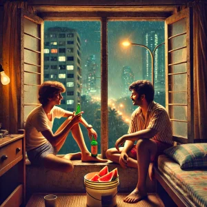 We sat by the window, passing the bottle back and forth, the city’s lights flickering like faraway stars. Our conversation drifted into dreams and doubts, into the paths we imagined our lives would take.